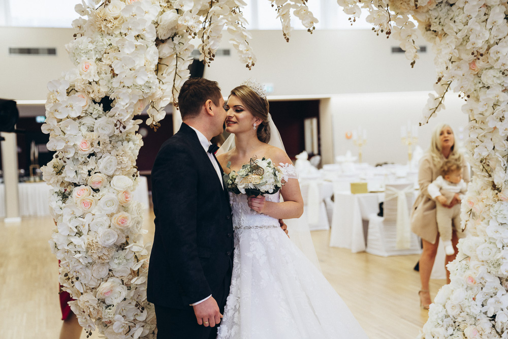 Für die Hochzeit in Siegen habe ich eine magische Winterhochzeit gestaltet, die Eleganz und Herzlichkeit perfekt verbindet. Um eine unvergessliche Atmosphäre zu schaffen, wurde hier jedes Detail sorgfältig durchdacht von der Hochzeitsplanung bis zur stilvollen Umsetzung. Die Dekoration orientierte sich an einem Weiß-Glamour-Style: eine wunderschöne Kombination ausstrahlendem Weiß und funkelnden Kristallen, die an Schnee und Eiszapfen erinnert.