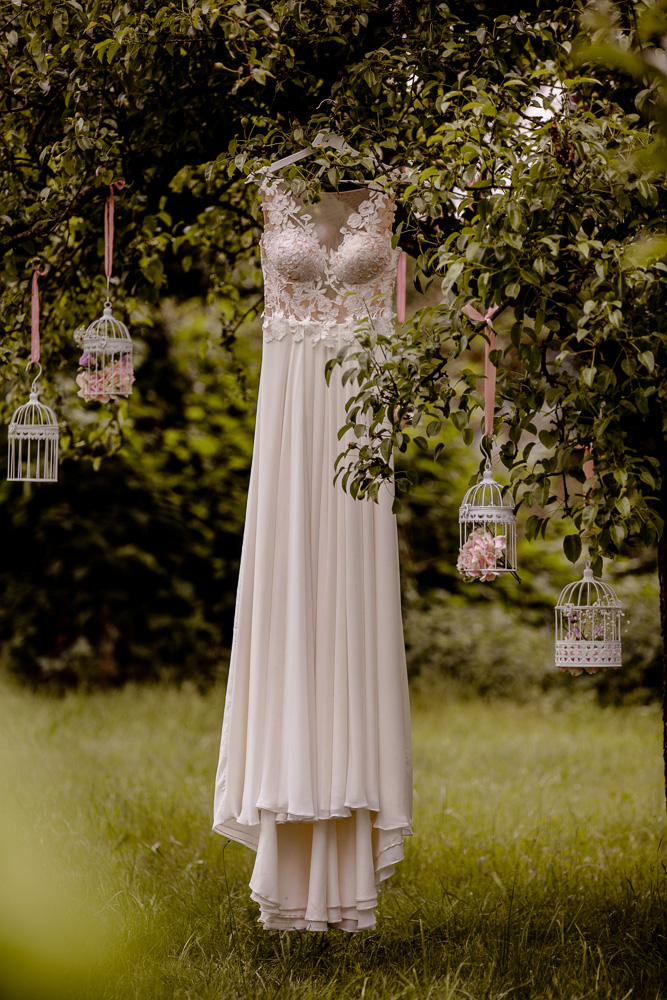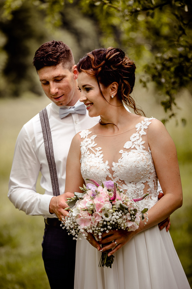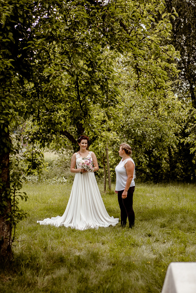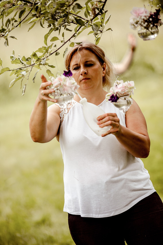 Von der ersten Idee über die kreative Planung bis hin zur perfekten Organisation und liebevollen Umsetzung begleitete ich das Brautpaar auf diesem Weg. Der Garten bot die perfekte Kulisse für eine freie Trauung unter Apfelbäumen, umgeben von duftenden Blüten, Vogelgezwitscher und dem sanften Rascheln der Blätter.