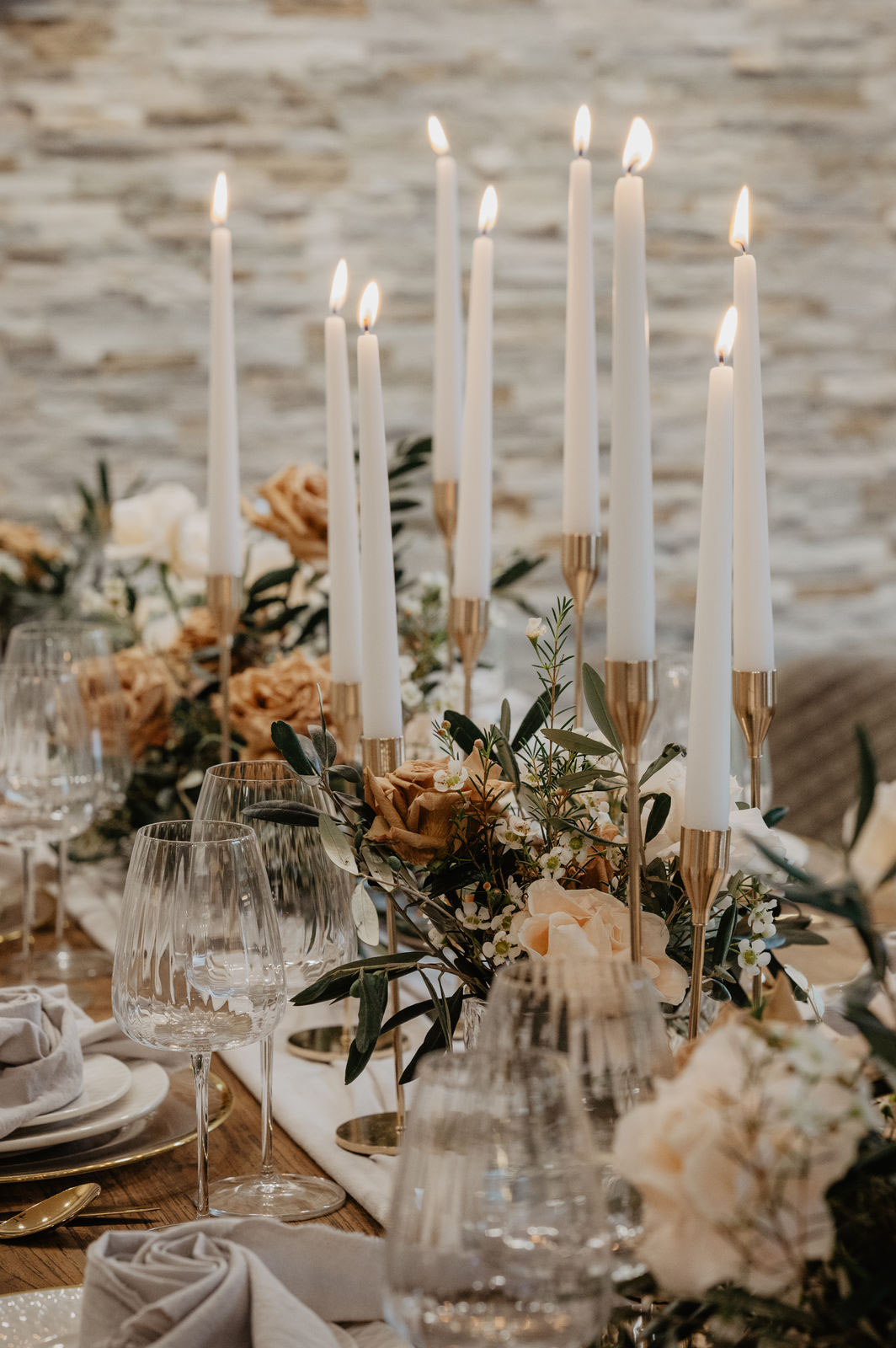 Weiche, flauschige Lammfelle und warme Kerzen setzten behagliche Akzente, die den frostigen Charme der Saison mit Wärme und Schutz vereinten. Diese winterliche Farbpalette und die liebevollen Details verliehen der Hochzeit in Siegen nicht nur einen stilvollen, sondern auch einen herzlichen und einladenden Charakter, perfekt für eine elegante Winterhochzeit mit Glamour-Faktor.