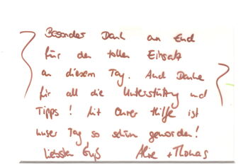 Vielen vielen Dank! Es war einfach nur perfekt ihr habt es zu einem unvergesslichen Tag gemacht.
