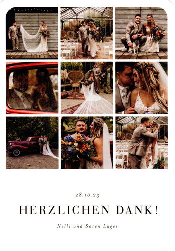 vielen Dank dir für die klasse Arbeit und die Geduld (gerade unser Trauzeuge war sehr speziell. Er war so nervös wie noch nie dafür der ehrlichste Mensch, den wir kennen). Alle waren begeistert und wir haben nur Lob erhalten ganz großes herzlichen Dankeschön an dich 😘😘😘🥰