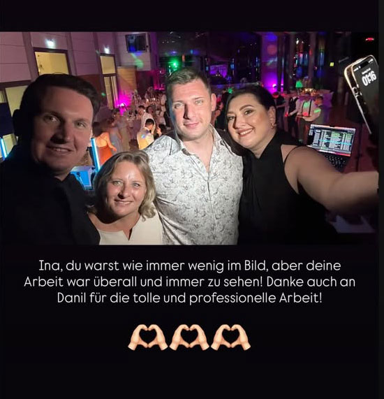 Vielen lieben Dank 🫶🫶 Ina und deinem Team für eure tolle Arbeit. Ihr wart Mega 🤩🤩🤩 spitze alle waren begeistert und hatten Spaß. Du hast so tolle Stimmung gemacht! Wir danken euch vom Herzen und wünschen euch einen angenehmen Sonntagabend. Liebe Grüße J & W 🫶😘🥰👌